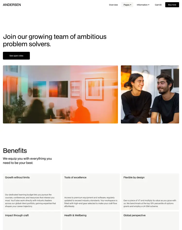 Build your own pages in moments with modular sections.